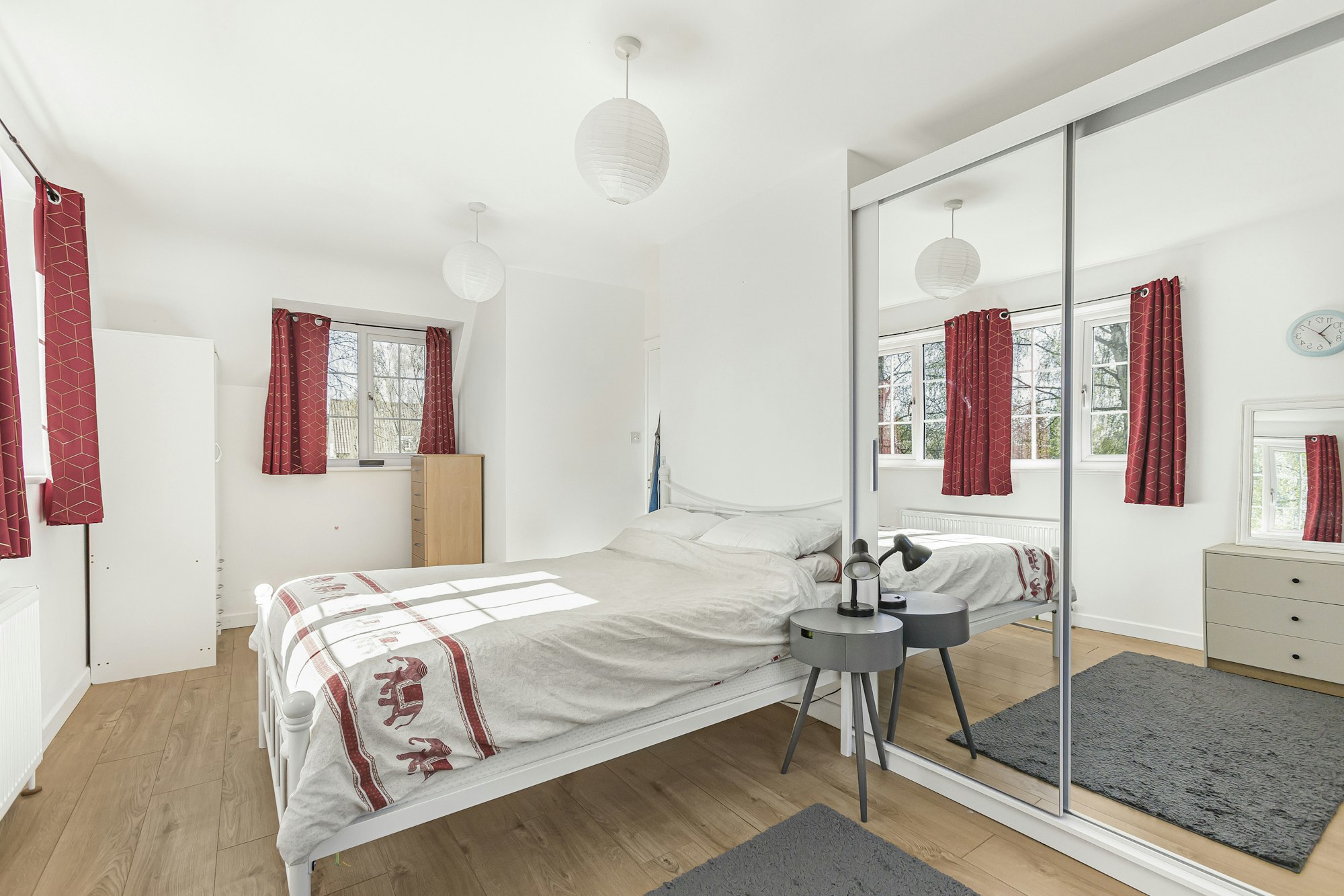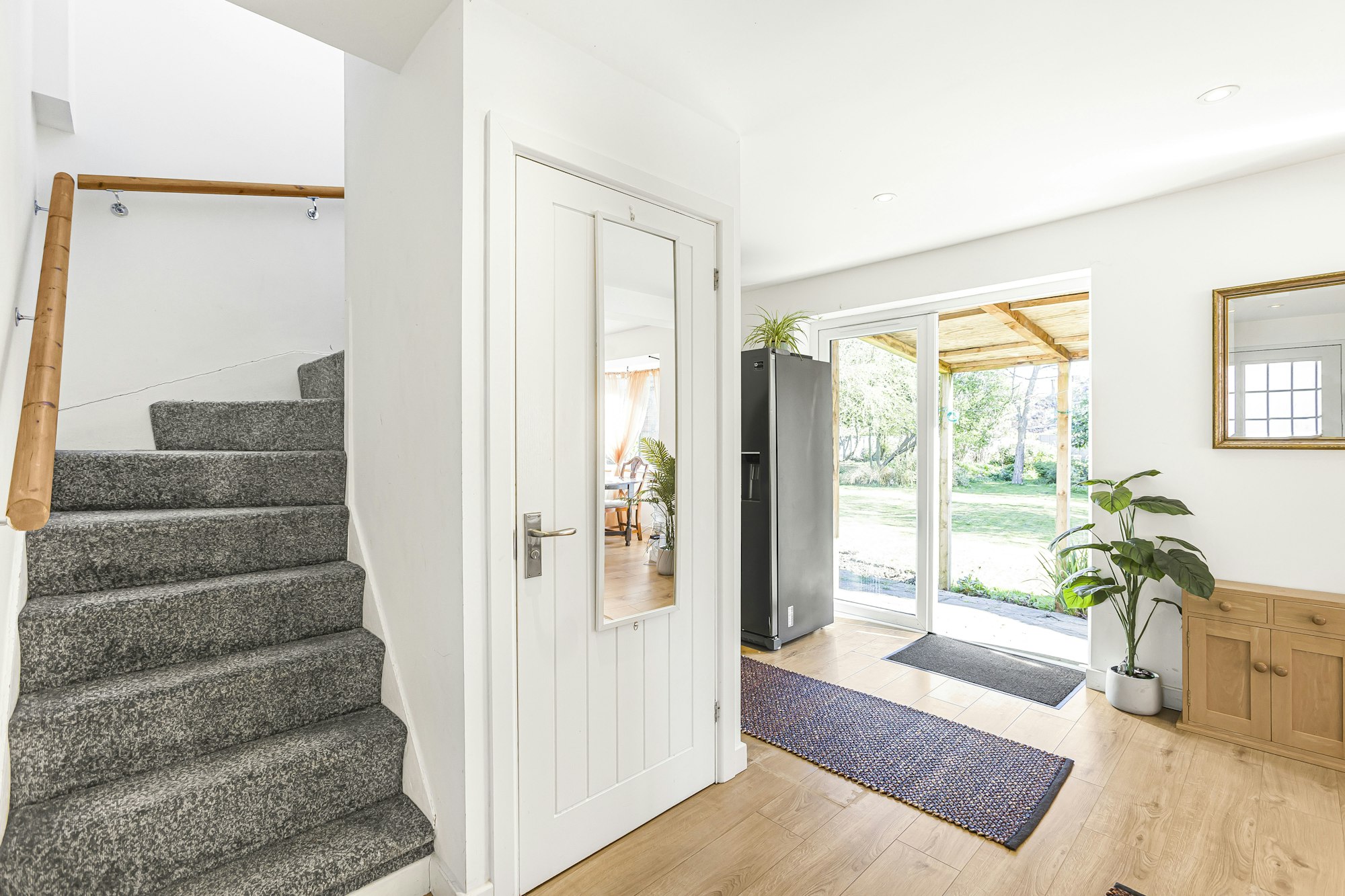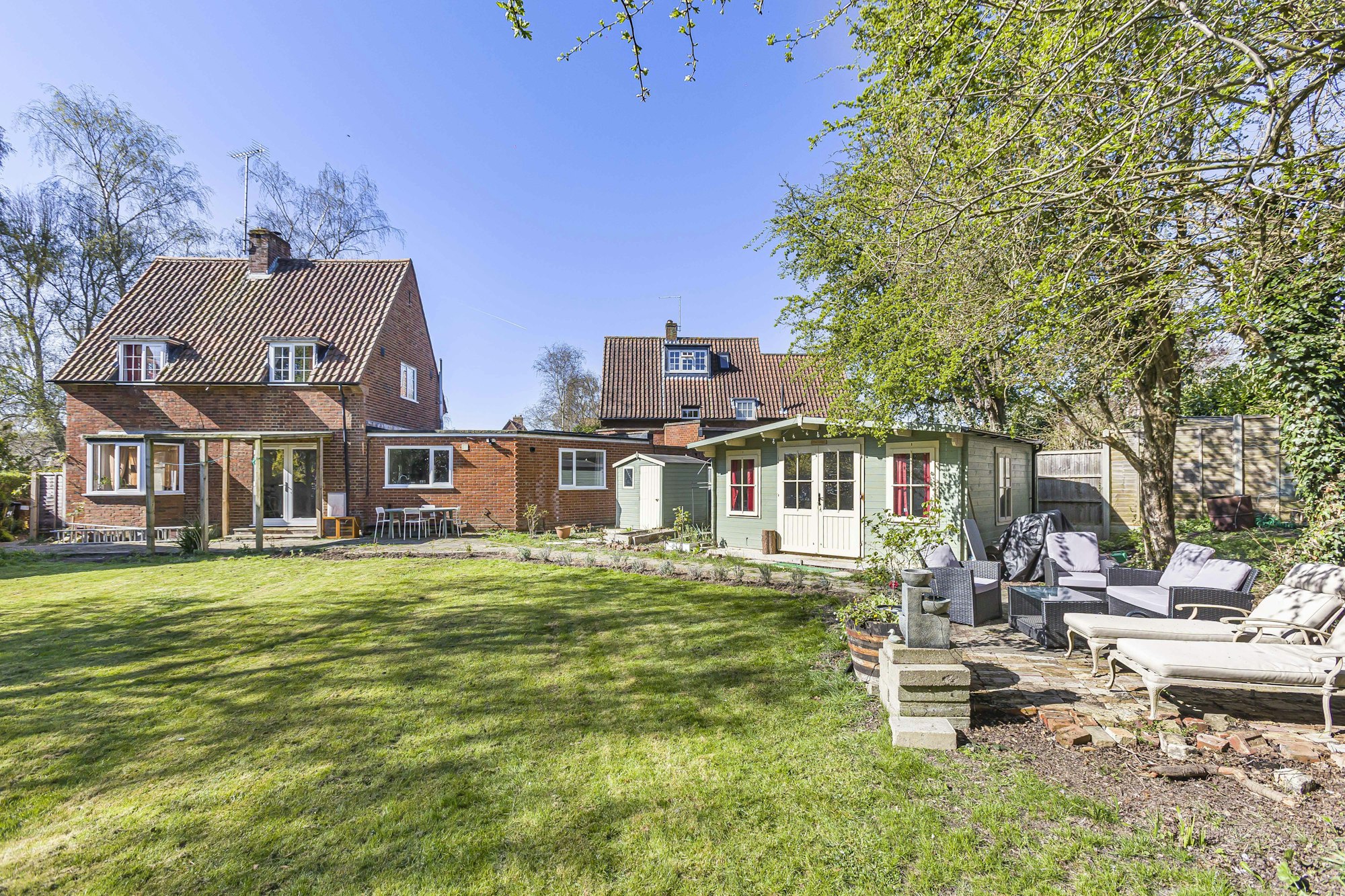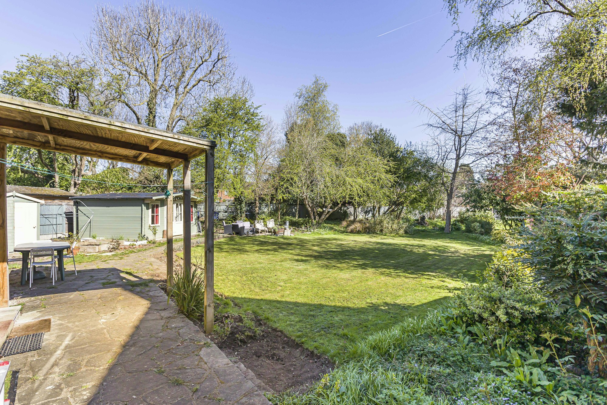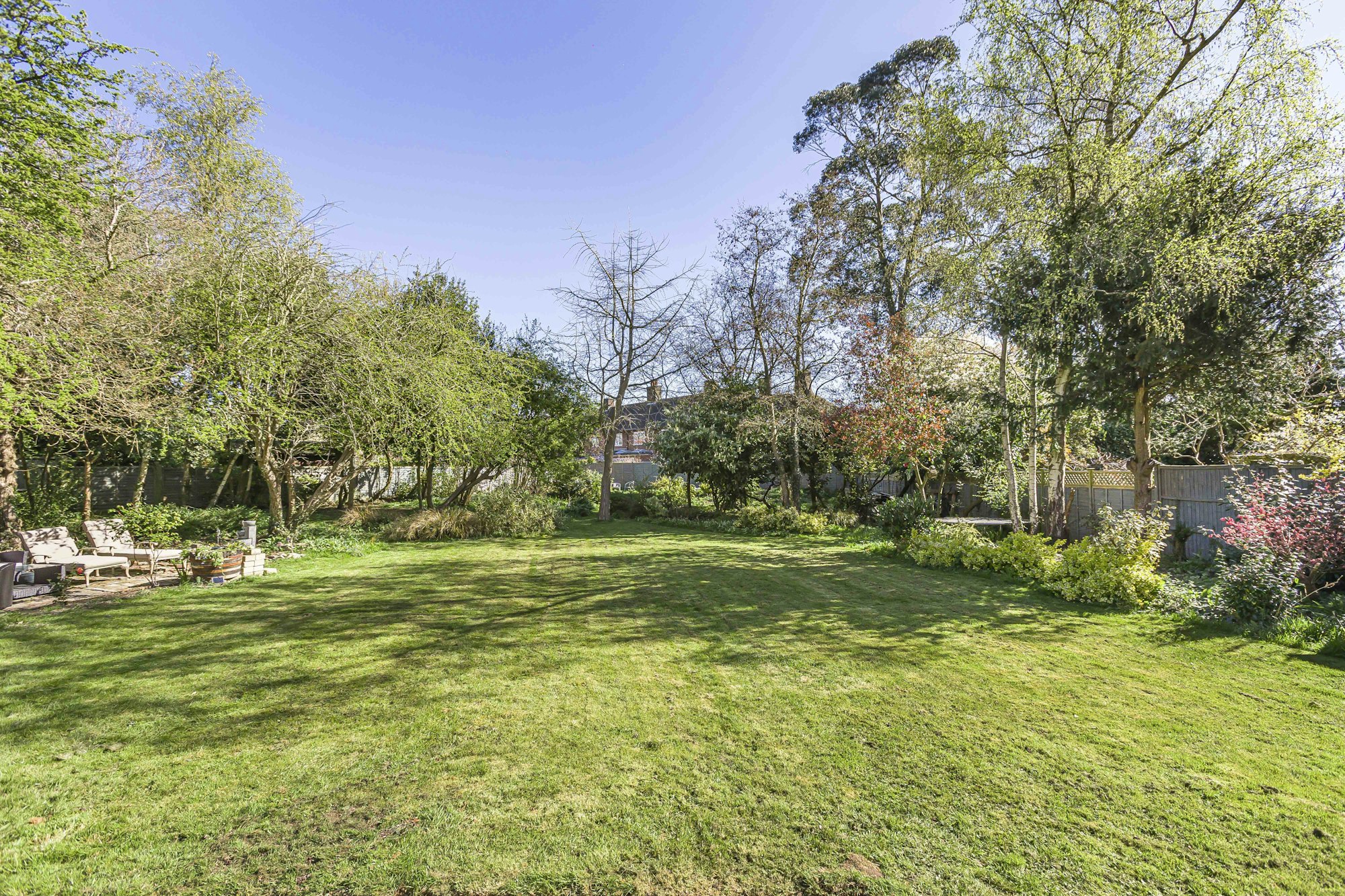 To the rear, the fabulous garden is mainly laid to lawn with mature trees and shrubs to the boundaries. The owners have installed a storage shed and garden home office which has windows and double doors opening onto the garden. With just the sound of bird song and squirrels playing in the trees, this has proved to be a quiet and tranquil space to work from.