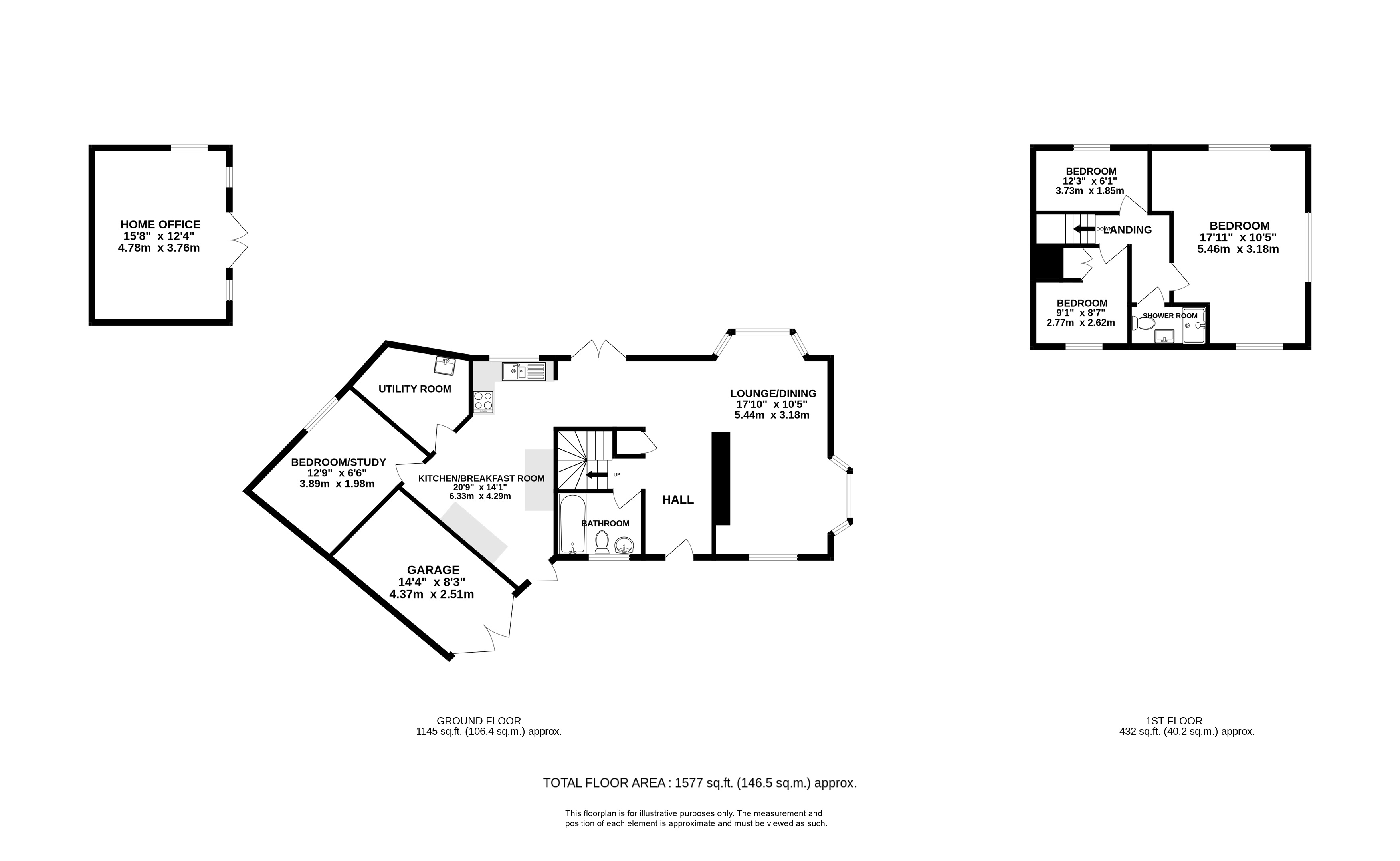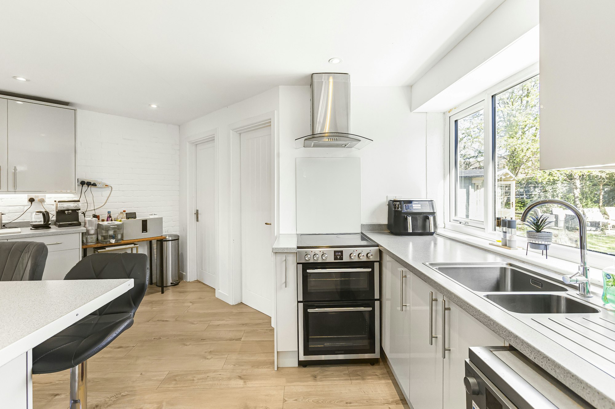 The kitchen has windows overlooking the garden and an access door to the front. Fitted with a range of storage cupboards with worktops over and breakfast bar, there is a separate utility room and access into a study/fourth bedroom.