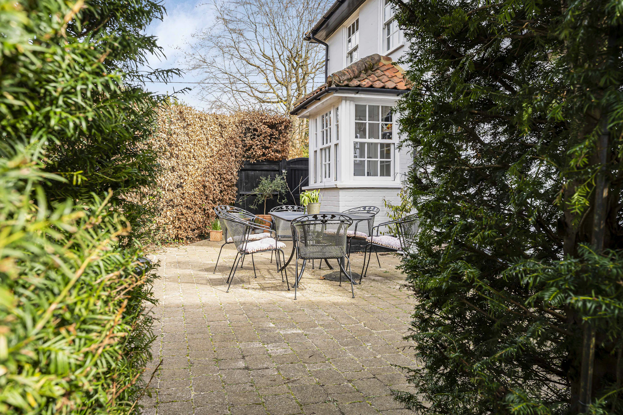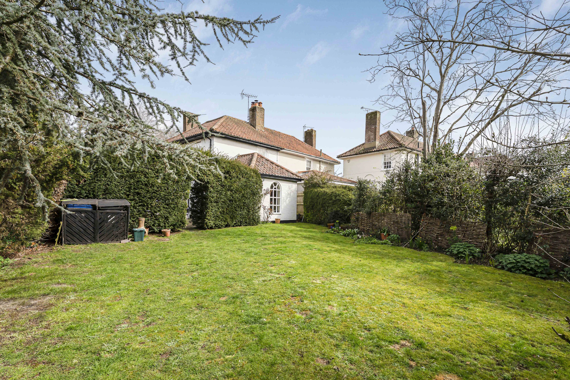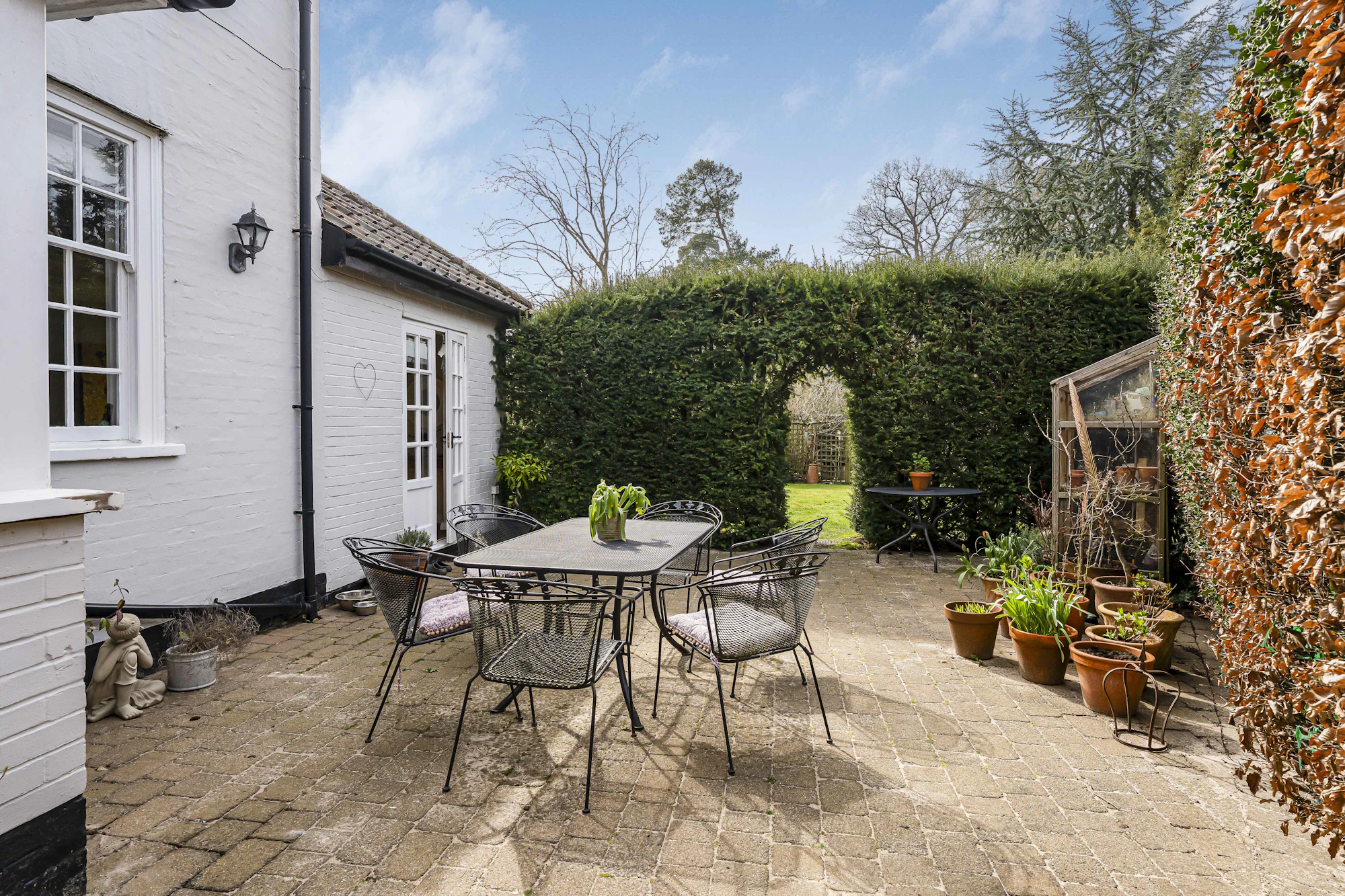 Externally, the property continues to impress with a beautifully maintained, south-west facing rear garden, measuring approx. 80 ft in length. With both the generous secluded courtyard, directly to the rear and side of the house, and large lawned area, it enjoys an abundance of sunlight throughout the day and is enhanced by mature trees providing privacy and a natural backdrop.
