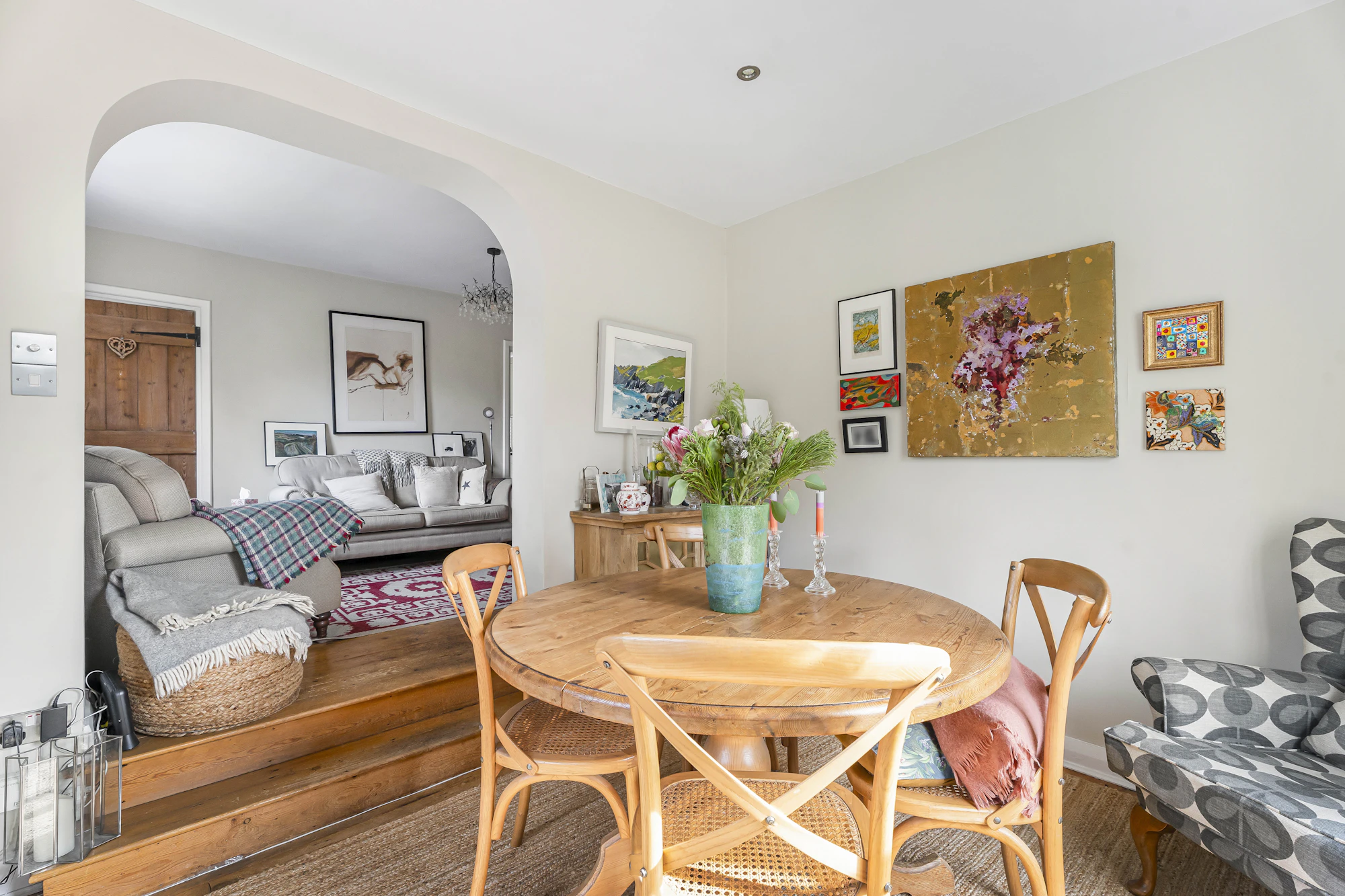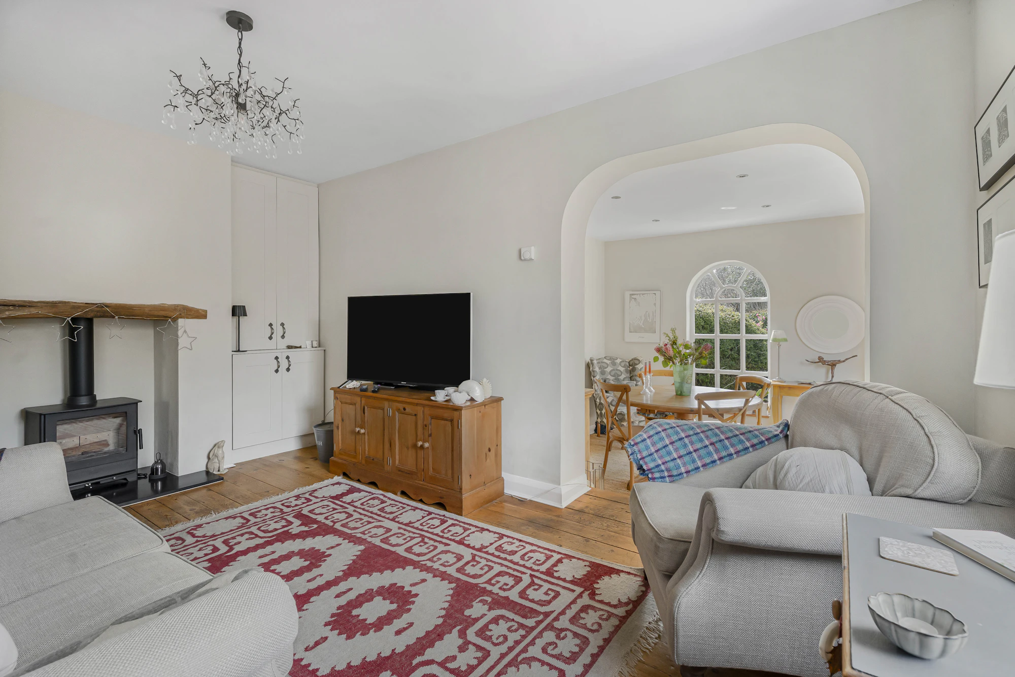 Upon entering, there is a welcoming porch and hallway, with stairs leading up to the first floor. From here and to the front of the property is the light filled kitchen/breakfast room, which has the modern convenience of underfloor heating. The property additionally has oil fired heating. Moving to the rear of the downstairs there are two generous reception rooms, the first a sitting room with log burner and the second a light filled dining room with doors out to the rear garden.