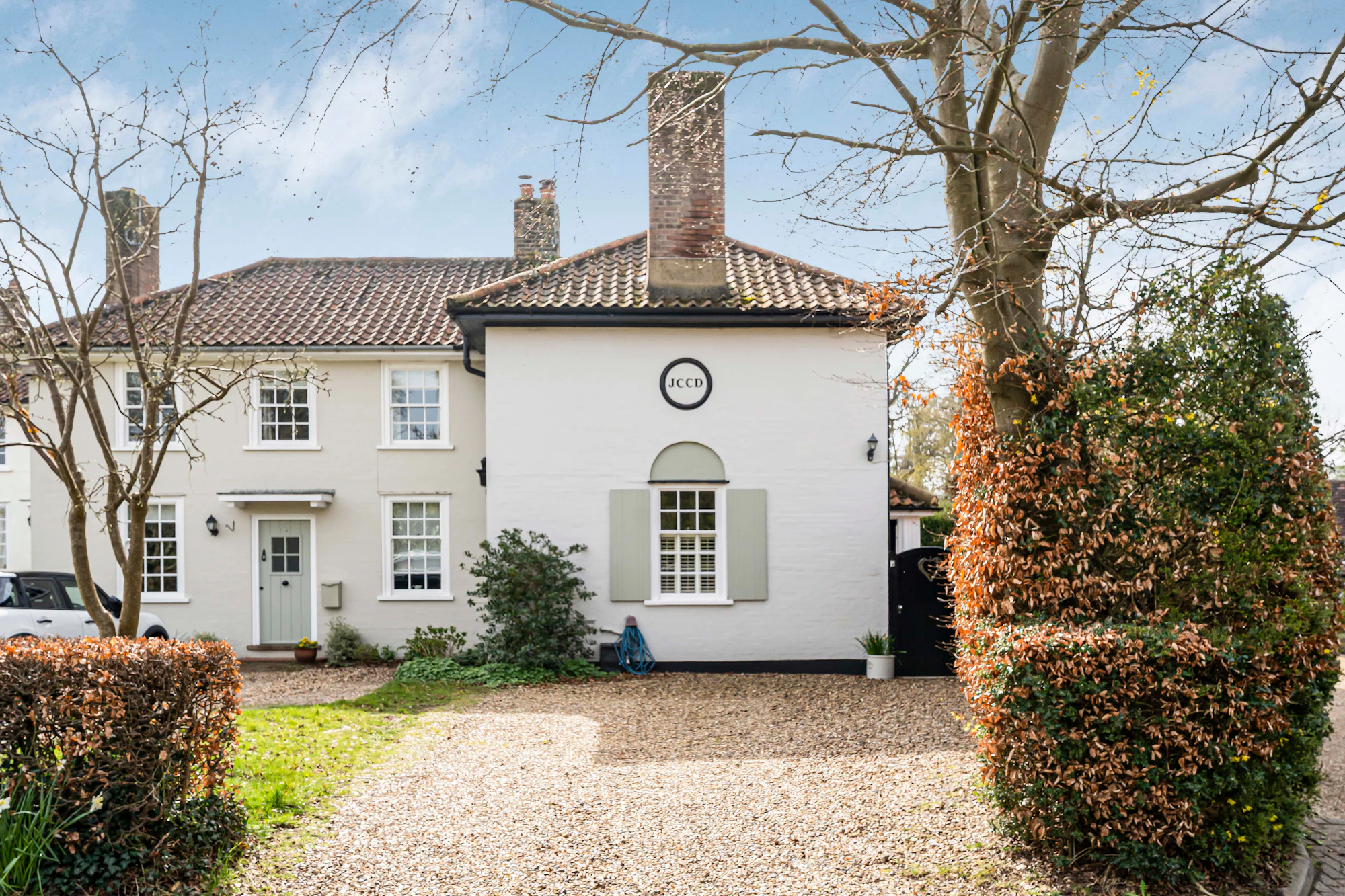 To the front of the property, there is also a large gravelled driveway allowing parking for two to three vehicles.