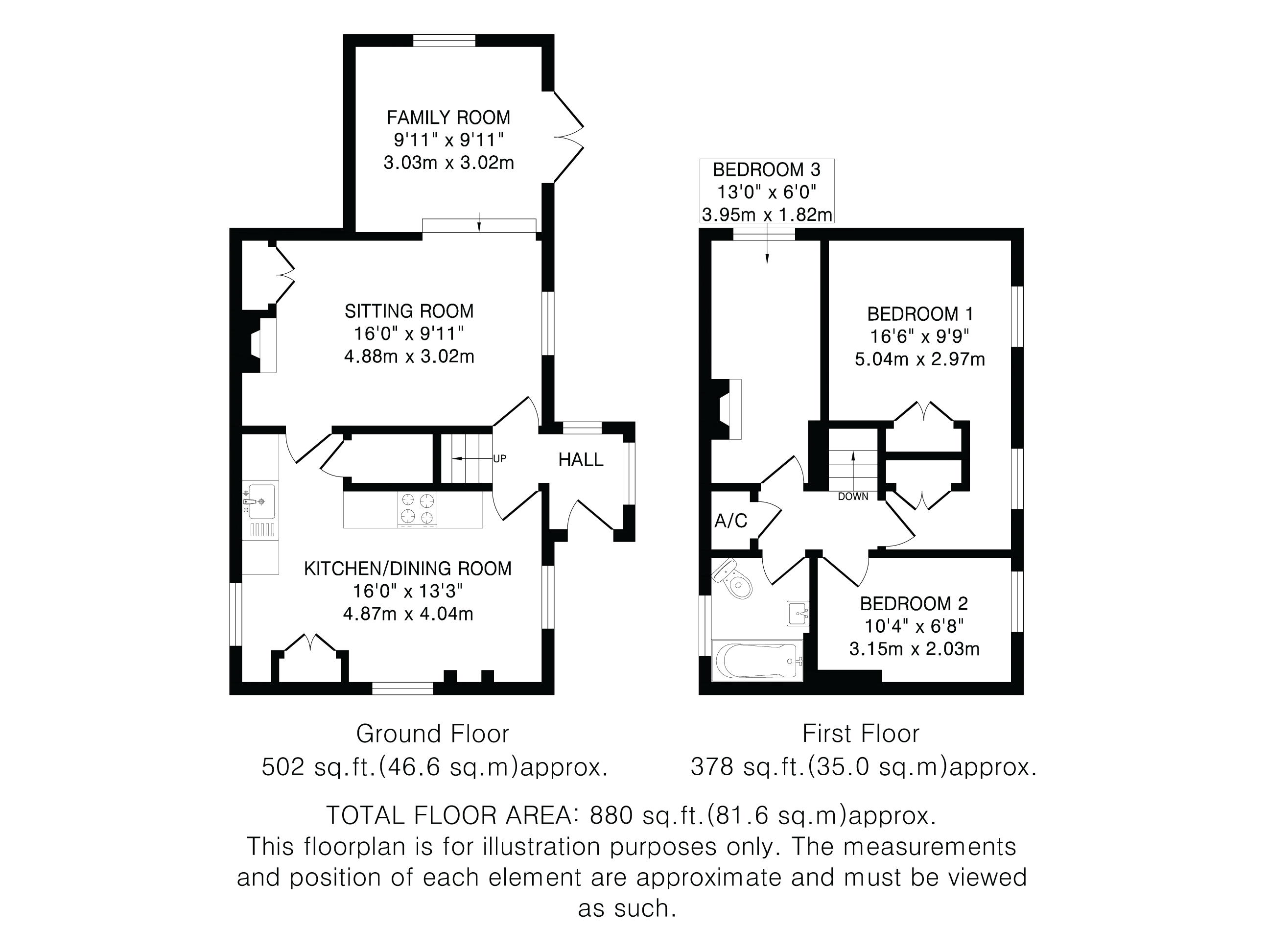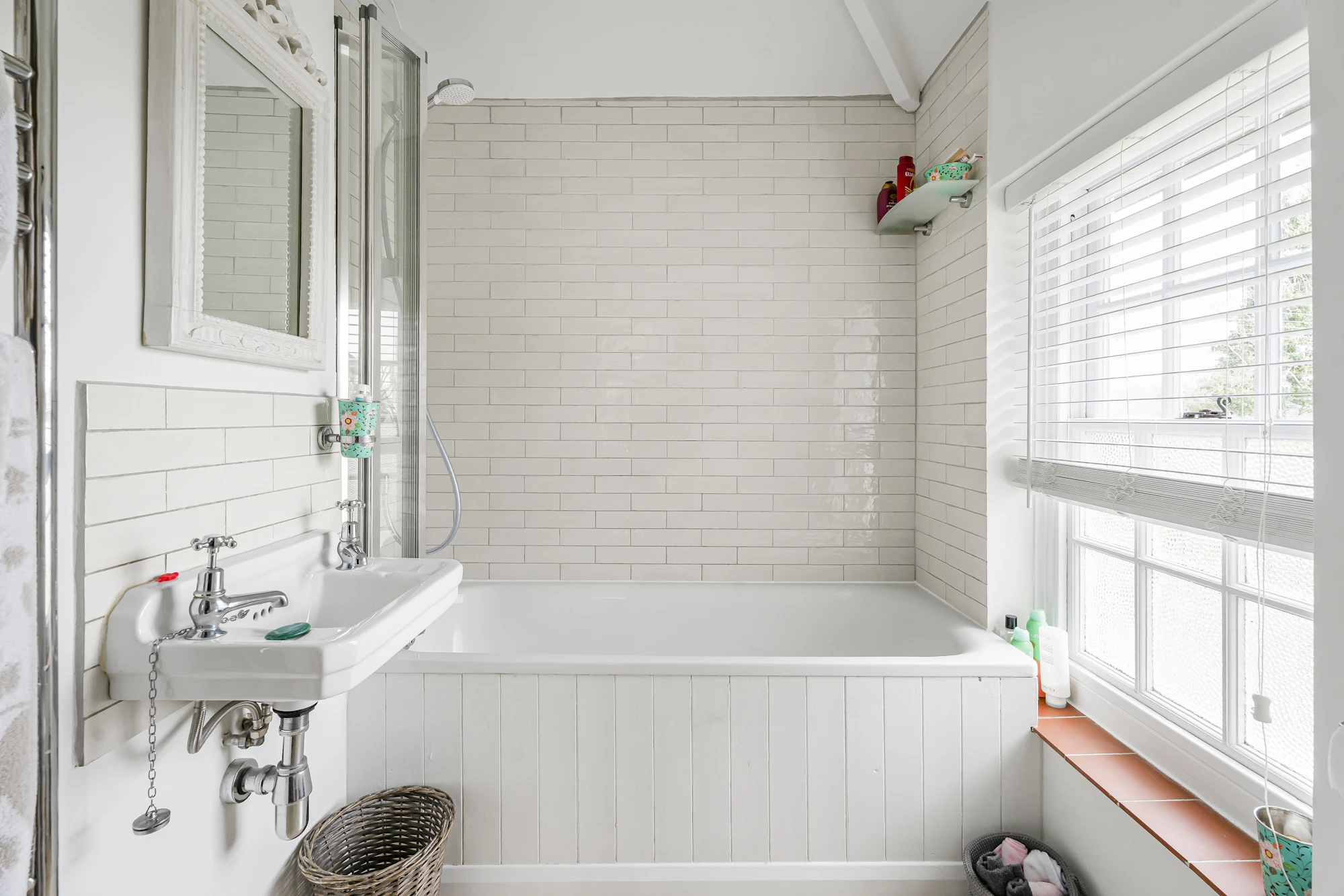 Up to the first floor there are three bedrooms, all served by the stylish family bathroom. The principle bedroom is generous in size and has two good size built in wardrobes.