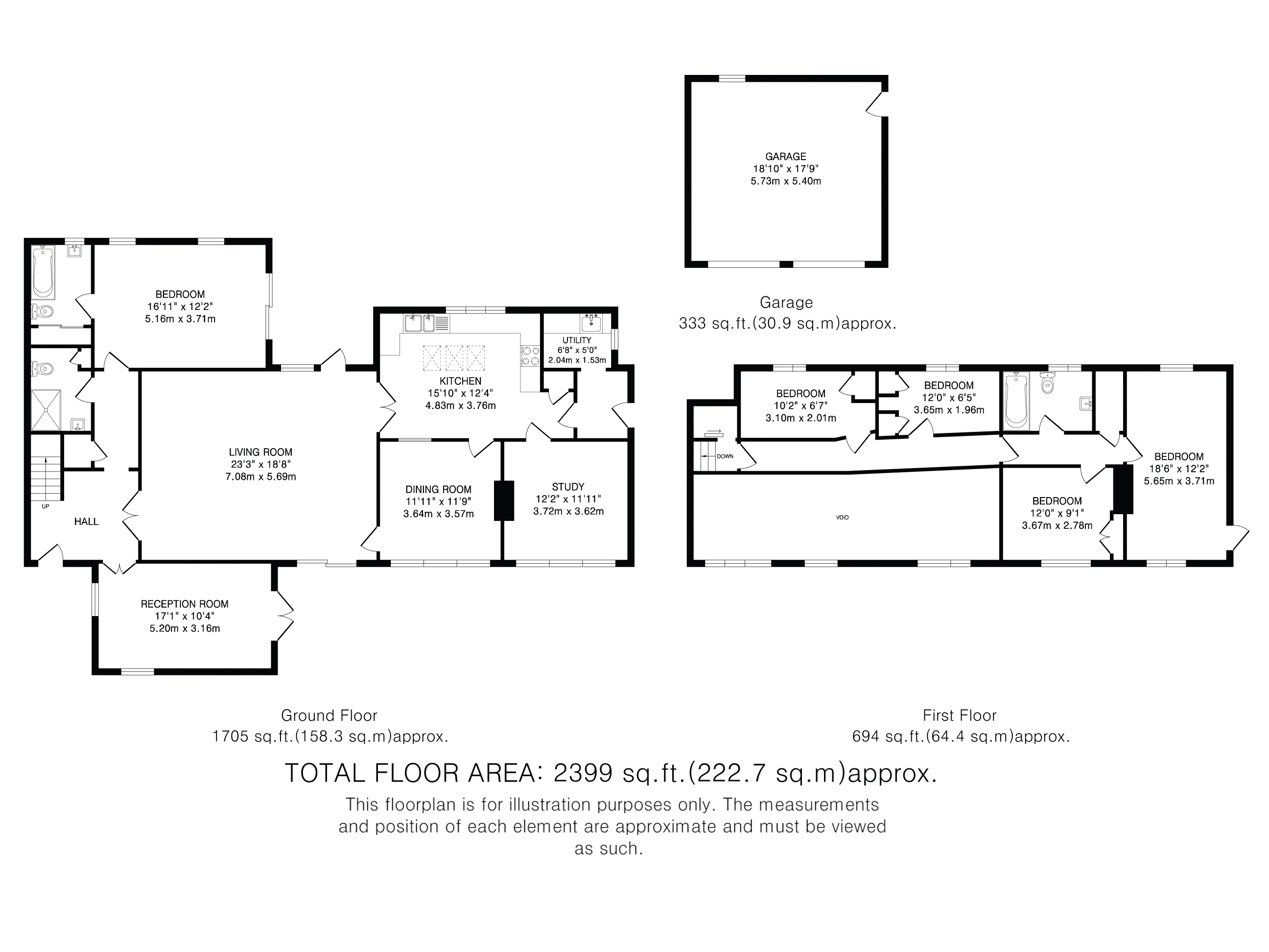 Tucked away off a small green and set well back from the road, the property opens with an inviting entrance hall leading to versatile ground-floor accommodation. Highlights include a snug overlooking the garden, sitting room, downstairs wc, and a fifth bedroom with en-suite shower overlooking the garden.