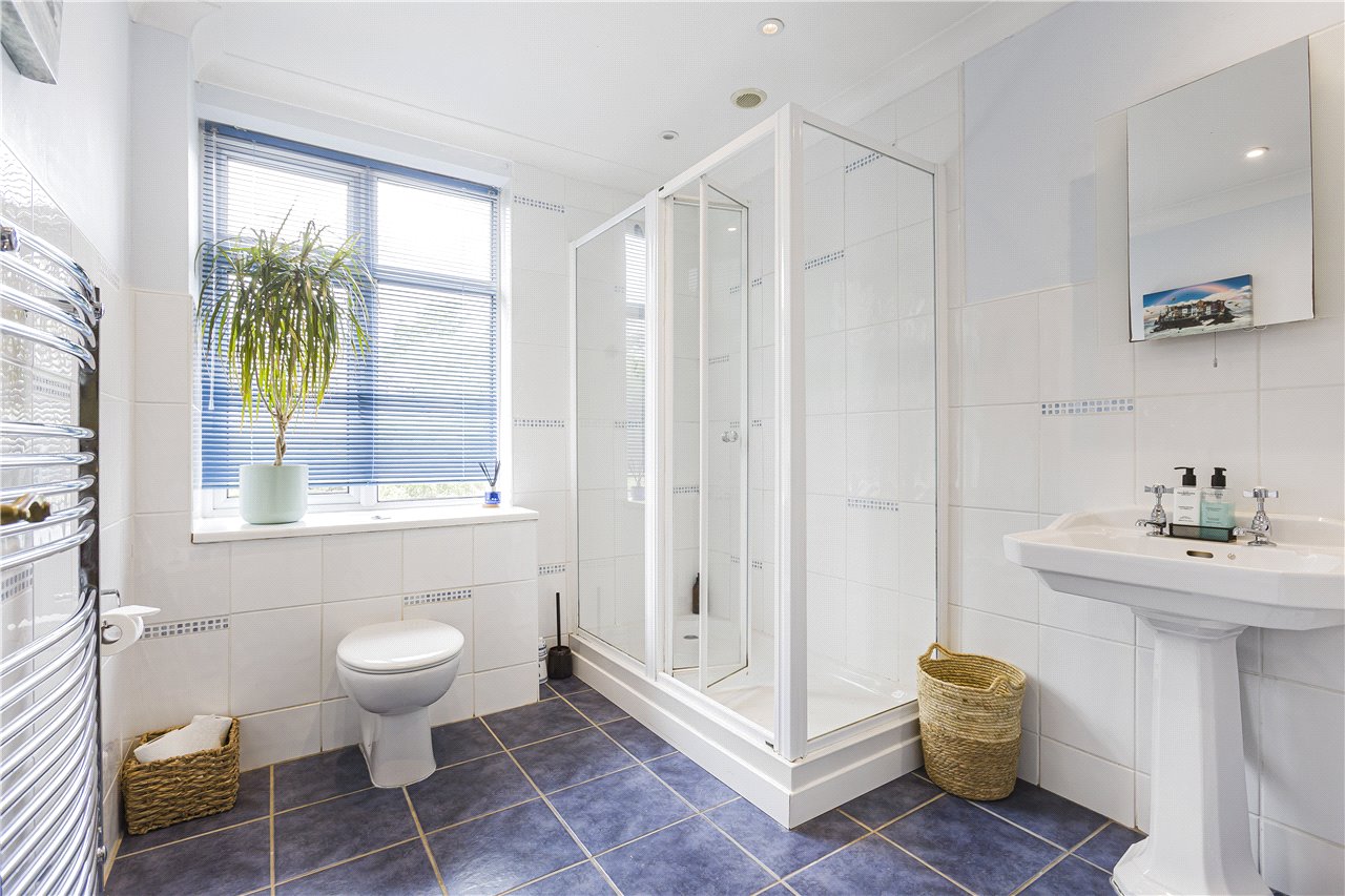 Upstairs, four well-proportioned double bedrooms benefit from two bathrooms. The large principal bedroom features built-in wardrobes and a smart modern en-suite with a four-piece suite, ensuring privacy and comfort. An additional family shower room caters to the remaining bedrooms.