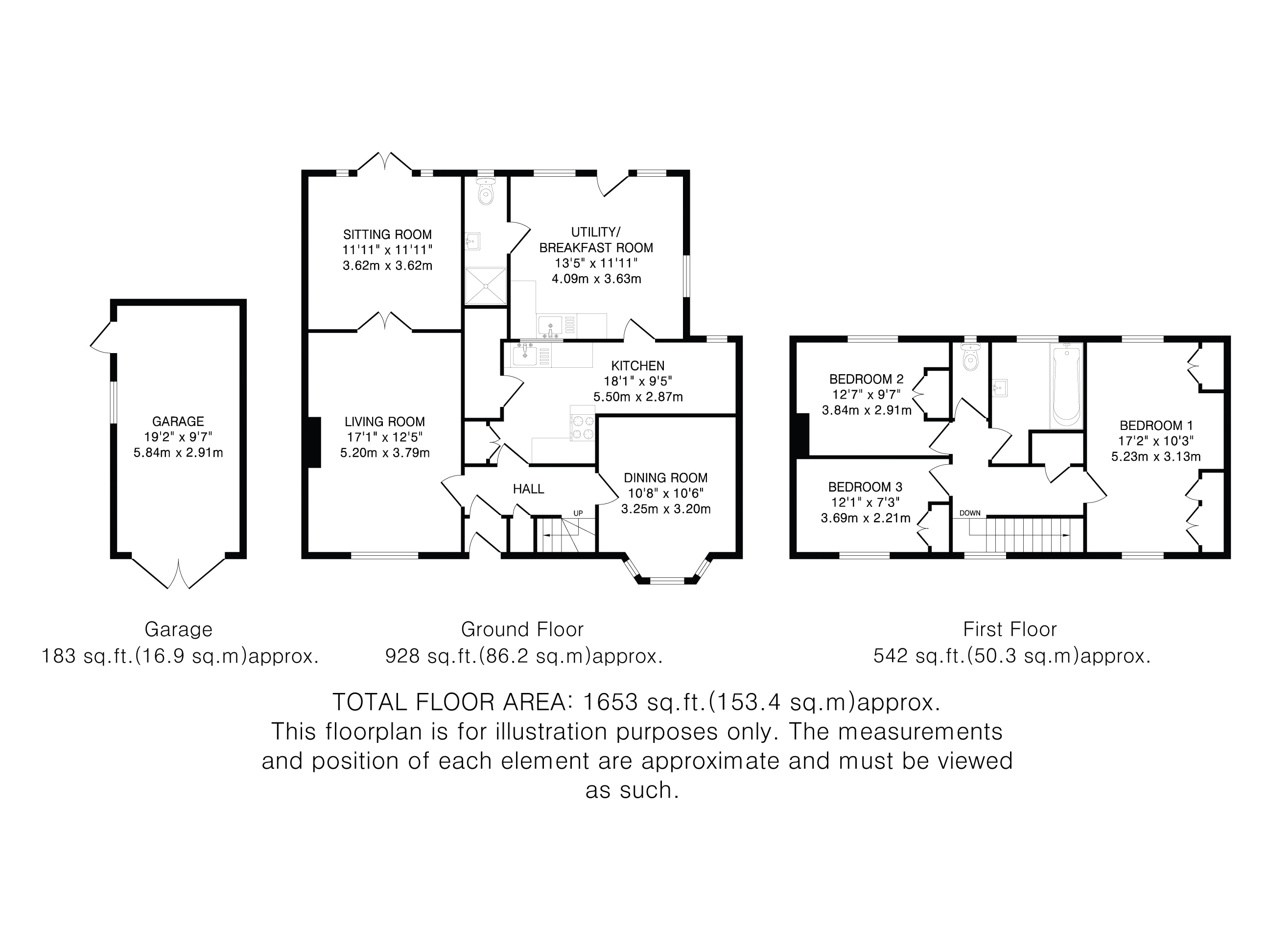Upstairs, a fully-tiled, family bathroom and separate w/c serve three good-size bedrooms. The largest, dual-aspect bedroom and another generous double bedroom benefit from fitted wardrobes and cupboards and enjoy a view of the superb rear garden. The third bedroom has an in-built double wardrobe and cupboards as well.
