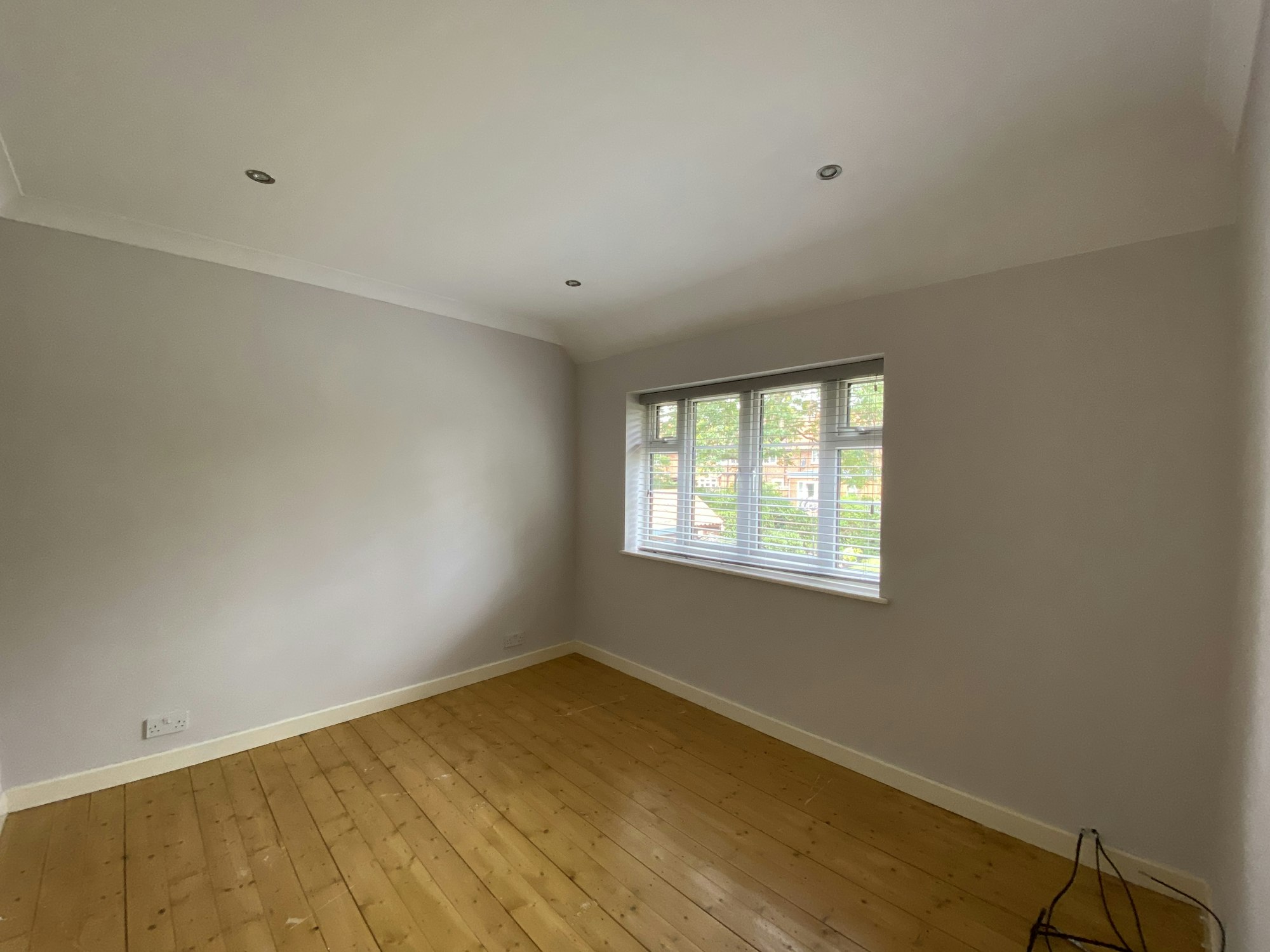 A second double bedroom is freshly decorated, offering a calm and adaptable space enhanced by contemporary vertical blinds. The third bedroom, currently set up as a child’s room, would also make an excellent home office or guest room.