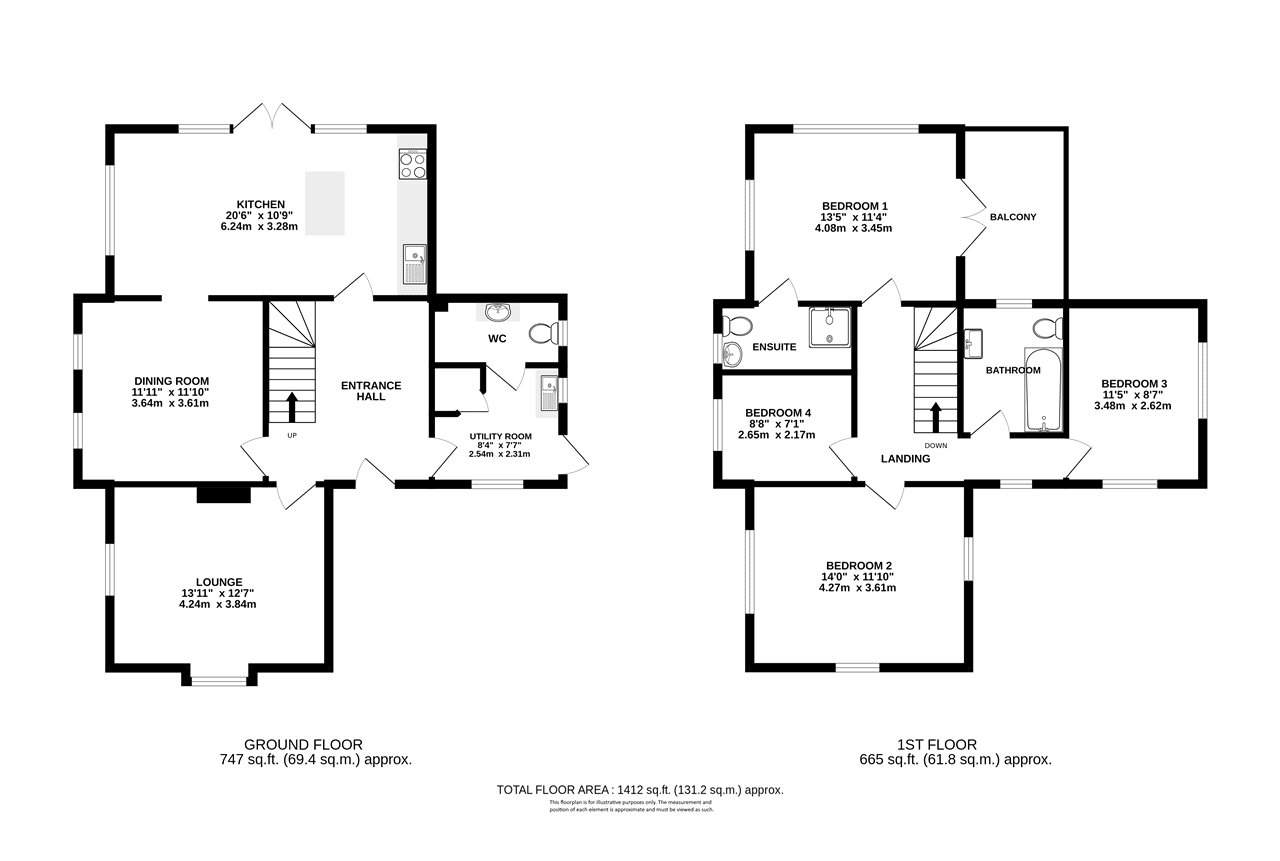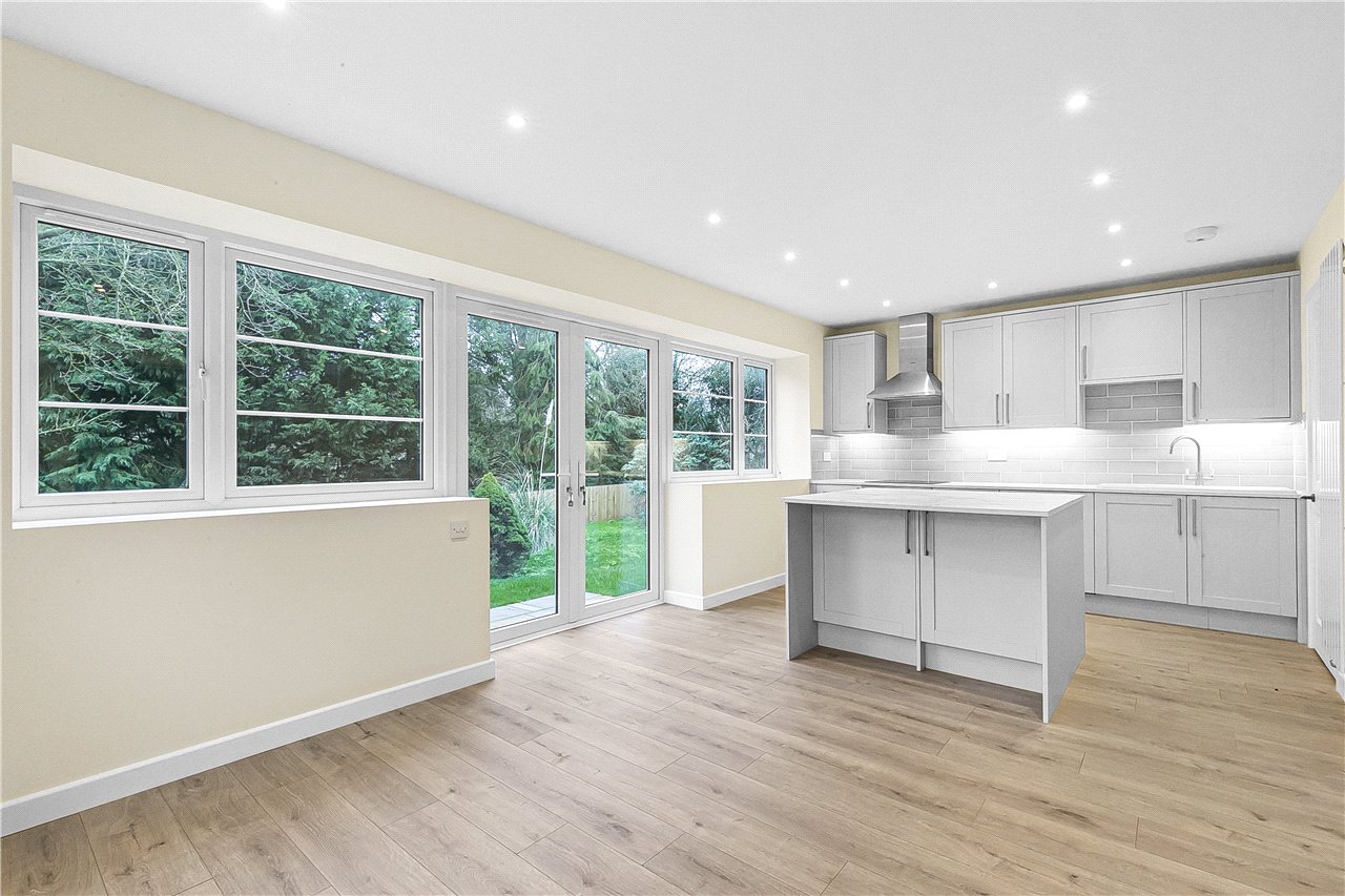 Nestled within expansive grounds on an elevated corner plot, 'The Laurels' exudes pride of place. This striking property, once a charming farm cottage from the 1900s on the Barbara Cartland Estate, offers a blend of historic charm and modern comforts. The generous, light-filled living spaces include a welcoming entrance hall leading to a re-fitted kitchen with a central island, and double doors opening to the rear garden. The lounge features a fireplace and bay window, alongside a dining room, guest cloakroom, and utility room. Upstairs, four well-proportioned bedrooms include a principal with en-suite and balcony. A family bathroom serves the remaining bedrooms. Approached through a gated entrance, the property offers privacy, with a gravelled driveway for ample off-street parking and landscaped wrap-around gardens with lovely views.