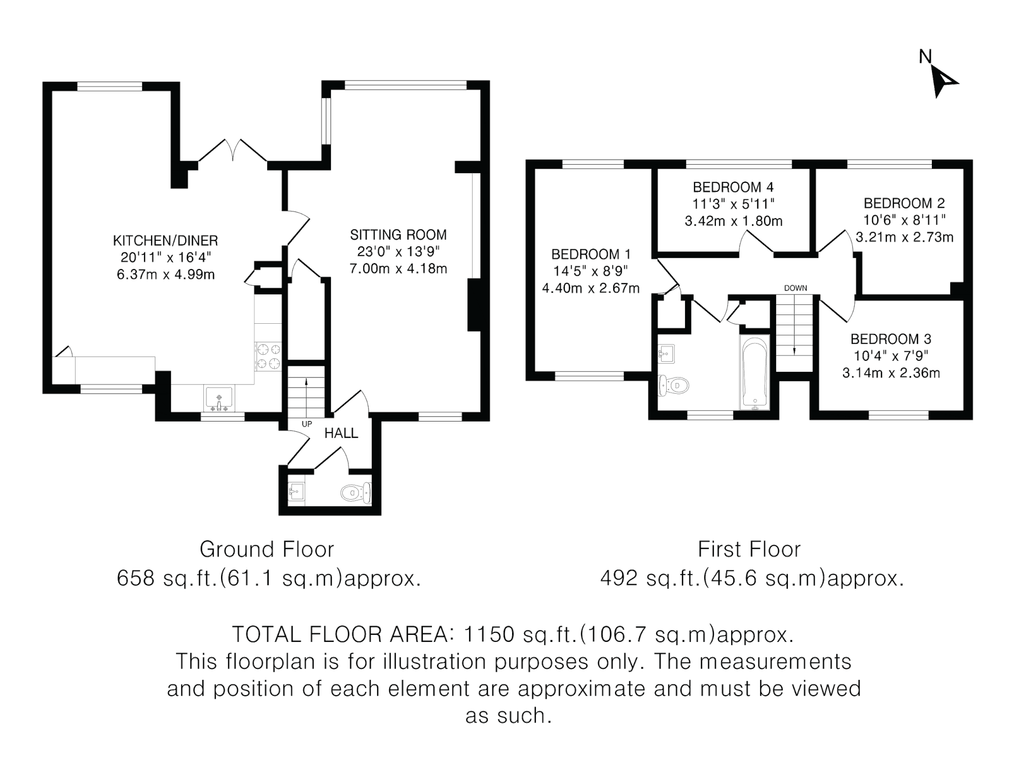 Upstairs, there are four bedrooms and a family bathroom.